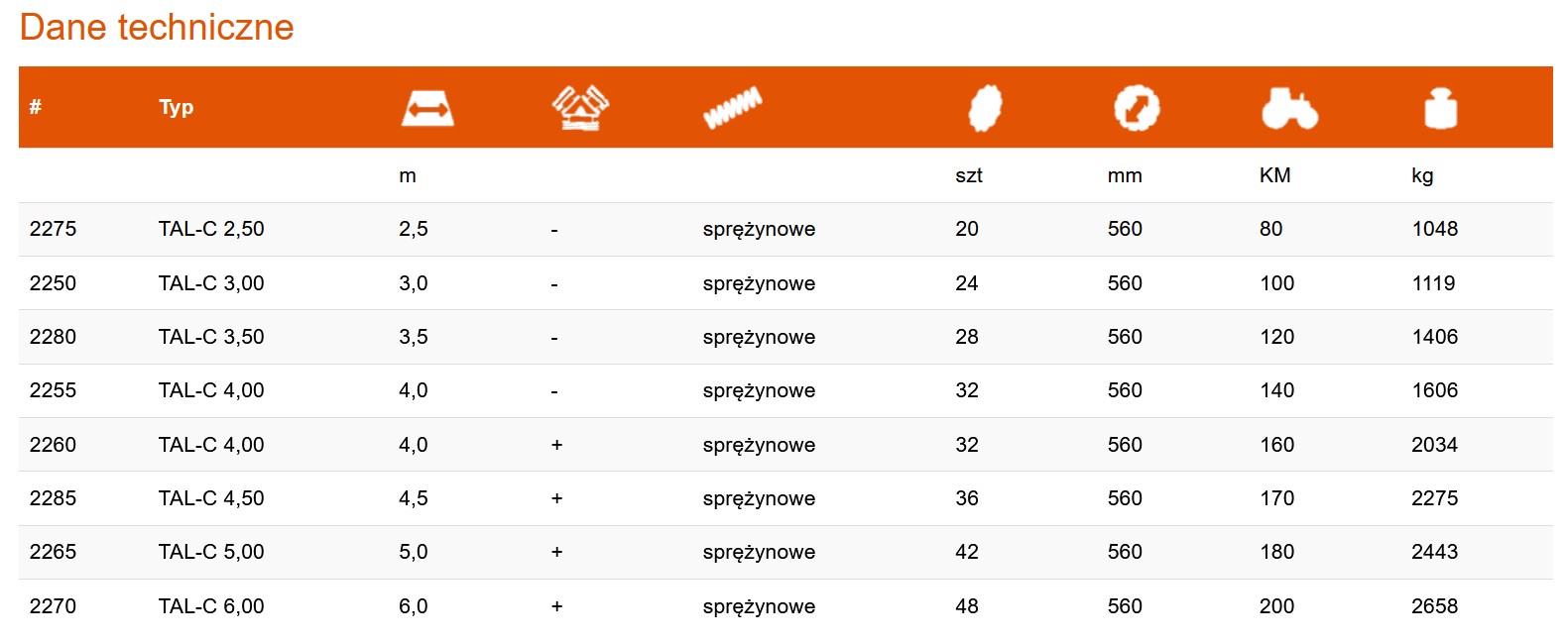 Szerokości robocze od 2,50m do 6,00m pozwalają na swobodny dobór maszyn do ciągnika. Maszyna może być wyposażona w wiele opcjonalnych dodatków, zgodnie z życzeniem klienta.